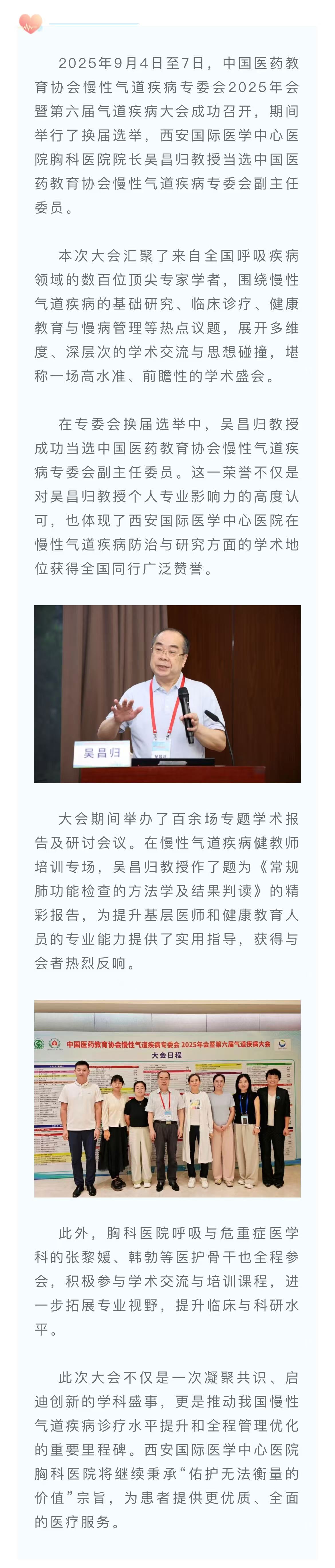 吳昌歸教授當選中國醫(yī)藥教育協(xié)會慢性氣道疾病專委會副主委